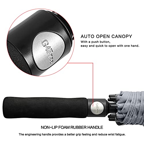 L'ULTIMO OMBRELLO DA GOLF Con un baldacchino oversize da 62 inch e un design resistente, un compagno ideale per i golfisti, i professionisti aziendali o per la vita quotidiana. Con il suo elegante design tutto nero, la comoda impugnatura in EVA, il telaio robusto e il meccanismo di apertura automatica, l'ombrello da golf G4Free Ultimate è perfetto in una città metropolitana o in un campo sportivo!