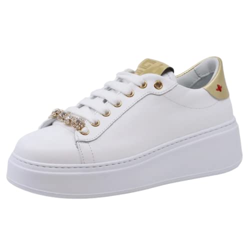 GIO+ G714GU Sneaker Donna in Pelle Bianca e Gufo White, 38