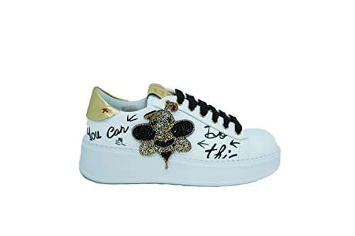 Gio+ Piu G746A Sneakers in Pelle Bianca da Donna Ape con Strass (Numeric_39)
