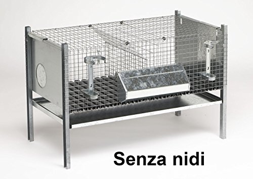 Uno sportellino posto sui fianchi laterali consente di togliere i nidi ed utilizzare la gabbia per l'ingrasso dei conigli