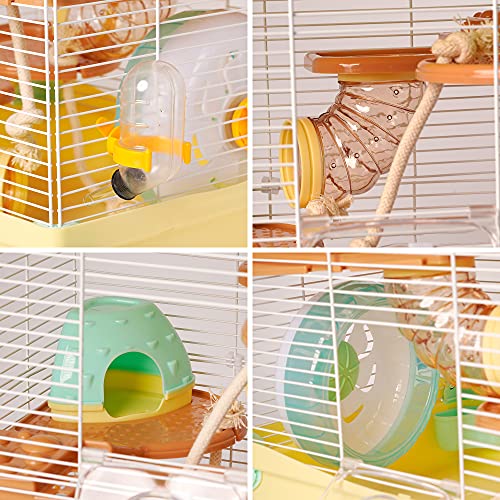 Gabbia per criceto Roborowski Gabbia per criceto 36 x 27 x 42,5 cm Gabbie criceto 2 piani con ruota abbeveratoio (giallo)