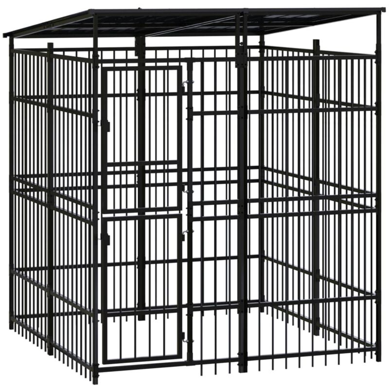 Questa versatile gabbia per cani offre molteplici usi: giocare, fare esercizio, allenarsi o semplicemente tenere il cane al sicuro. Sarà il paradiso di gioco perfetto per i vostri amici pelosi! Questa gabbia per cani offre ampio spazio per gli esercizi. Le pareti a barre d'acciaio aiutano a prevenire danni e incidenti imprevisti consentendo al tempo stesso la ventilazione. Grazie alla robusta struttura in acciaio verniciato a polvere, questa cuccia per cani è resistente e costruita per durare. Il tetto offre protezione da sole, pioggia, neve e altre condizioni atmosferiche. La porta a battente con sistema di chiusura con serratura garantisce maggiore sicurezza e protezione per i vostri cani. Colore: Nero Materiale: Acciaio verniciato a polvere Dimensioni complessive: 199 x 200 x 228 cm (L x P x A) Dimensioni anta: 50 x 180 cm (L x A) Con una porta e un tetto Sistema di chiusura con serratura Assemblaggio richiesto: Sì