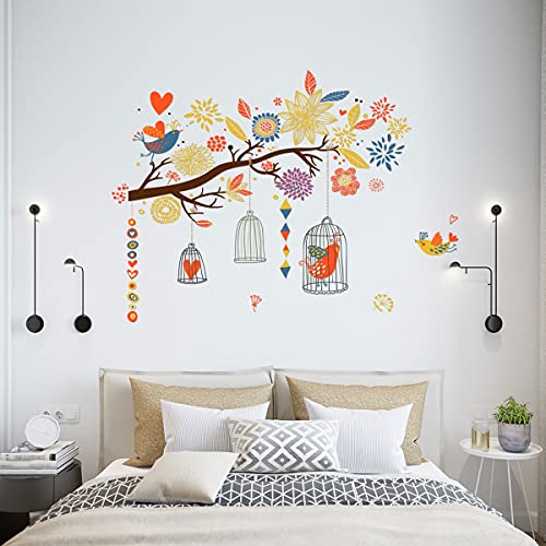 Gabbia di fiori uccelli su ramo di albero parete rimovibile arte vivaio piante adesivi per ragazze bambini camera da letto e stanza partito ufficio TV sfondo decorazione