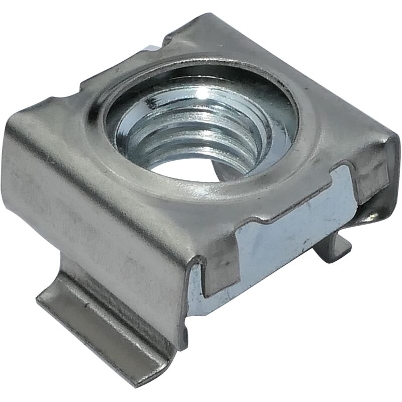 10 pezzi. Confezione da dadi ingabbiati Filettatura M8 Larghezza 16 mm. Altezza totale: 12 mm. Adatto per lamiera spessa da 1,8 mm a 3,2 mm. Materiale: acciaio zincato dado, gabbia in acciaio INOX A2