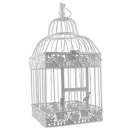 Gabbia per uccelli in metallo, di forma quadrata, colore bianco, Metallo, bianco, P-340 groß
