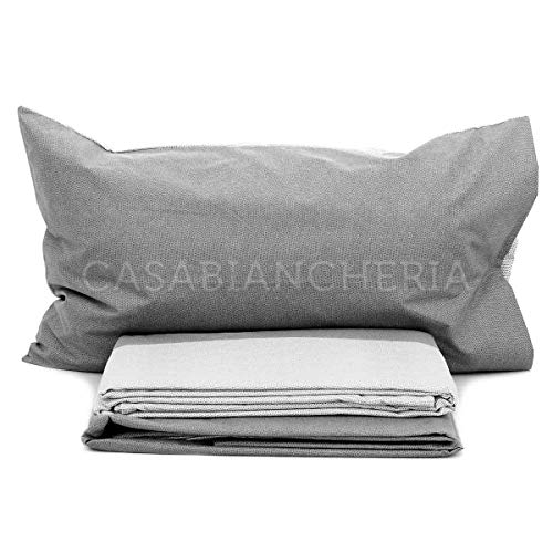 Gabel Completo Lenzuola Matrimoniale di Flanella Chromo-Grigio-Matrimoniale