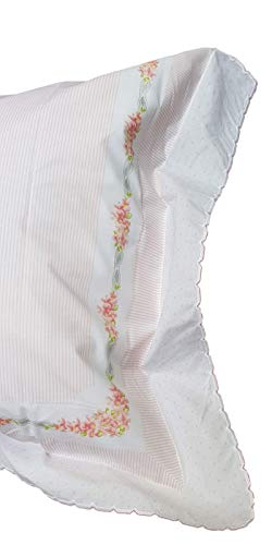 Federe con motivo piazzato a tre volani, finitura a smerlo.