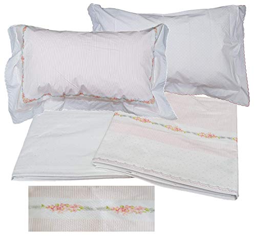 Lenzuolo con motivo piazzato, finitura a smerlo.
