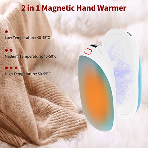 【Scaldamani magnetico 5000mAh*2】Moda e design utile: lo scaldamani magnetico separabile è dotato di una batteria da 5000*2mAh. Puoi usare questo scaldamani magnetico in modo divisibile, quindi le tue mani possono essere riscaldate contemporaneamente in inverno. Ogni scaldamani è integrato con una batteria da 5000 mAh e può supportare la durata del riscaldamento per 4-8 ore.