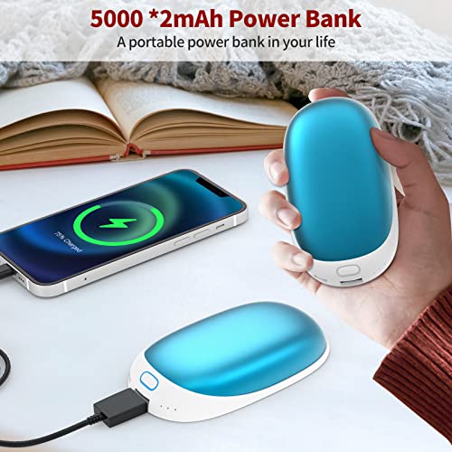 【Scaldamani e Power Bank 2 in 1】 Grazie al design separabile e alla batteria integrata da 5000 * 2 mAh, è possibile utilizzare lo scaldamani separatamente, metà come scaldamani da 5000 mAh e metà come power bank da 5000 mAh. Quando la batteria del tuo laptop o cellulare esaurisce, questo scaldamani può risolvere le tue esigenze urgenti. Gli indicatori luminosi ti informano sulla batteria rimanente.