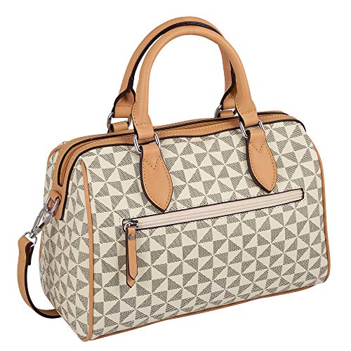 Realizzata in Finta pelle con la classica stampa grafica all-over, tracolla lunga rimovibile e dettagli in pelle liscia e logo in metallo sulla parte anteriore, questa borsa rappresenta un'essenza di freschezza e funzionalità che ti accompagnerà nelle giornate più impegnative, con un look urbano chic.