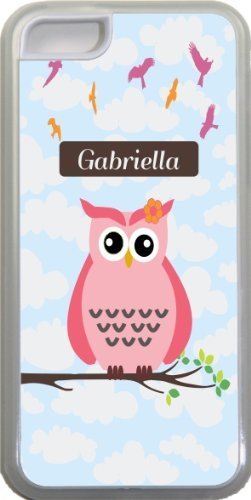 Gabriella Name - cute Pink Owl on Branch with Personalized Name design iPhone 5 C case cover (Clear rubber with bumper Protection) for Apple iPhone 5 C Sell on Zeng case