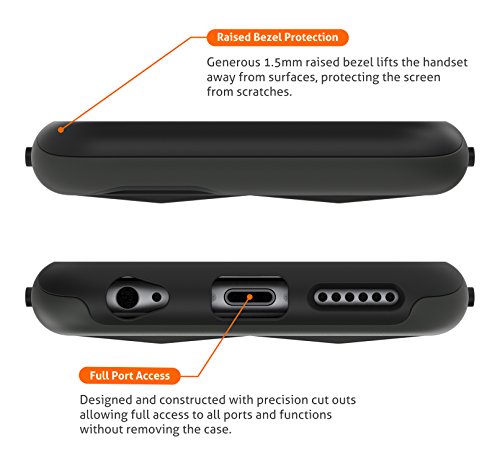 Custodia resistente con un piatto nero finitura satinata che è liscia e tattile al tatto. Più sottile custodia nella sua classe.
