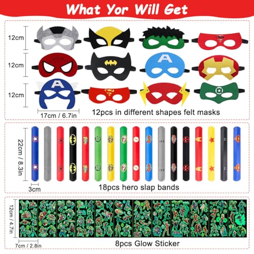 Gadget Compleanno Bambini Supereroi, 12 Maschere Supereroi, 18 Braccialetti di Supereroi, 12 Tatuaggi Temporanei, Compleanno Regalo Supereroi, Supereroi Avengers Regalo Festa per Bambini