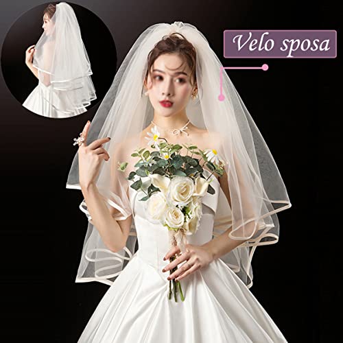 【Dimensioni】: Formatodel velo: 30 pollici. Formatodel di fascia: 3.5 x 30 pollici. Velo da Spos realizzati in raso, pizzo e poliestere in modo che siano comodi da indossare. Velo con pettine in plastica permette il velo facile da indossare.