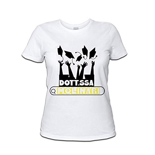 Gadgeteventi T-Shirt Maglietta Donna Personalizzata Laurea Dottoressa Cognome Maglietta Femminile (Bianco, M)