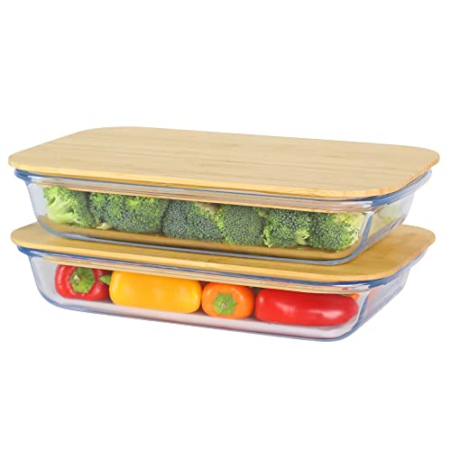 Gadgy Contenitori In Vetro Per Alimenti | 2 Pezzi | Contenitori per alimenti in vetro | Container per alimenti | Recipienti per alimenti | Scatolette per cibo | Ermetici in bambù