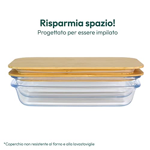 AMICA DELL'AMBIENTE E DI LUNGA DURATA - Fatta di vetro robusto e resistente al forno, incredibilmente difficile da rompere, con un coperchio fatto al 100% di bambù coltivato in modo sostenibile.