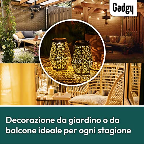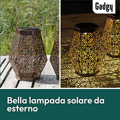 Gadgy Lanterna Solare Esagonale | Set Di 2 | Lanterne Solari Da Esterno | Lampada Led Da Giardino, Terrazzo E Balcone | Design Orientale | Metallo Color Rame