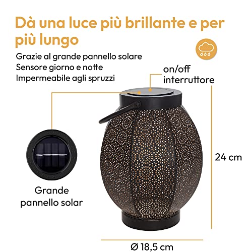 Gadgy Lanterna Solare Da Esterno Fiore | Lanterna Da Giardino e Balcone A LED | Lampada Orientale | Lampade Decorativa | Metallo Nero E Oro | Ip65-impermeabile