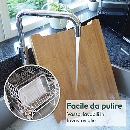 Gadgy Tagliere con Contenitore | Tagliere in Legno 40 x 30 x 7,5 cm. | Tagliere con Vaschette | 3 Pezzi Vassoio Inox Incluso |Set Tagliere da Cucina | Tagliere con Cassetto