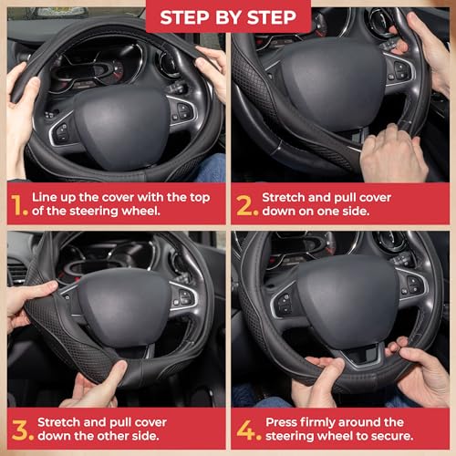 FACILE DA ADATTARE - Per adattare questo prodotto, tutto ciò che serve è un paio di mani forti per aiutare ad allungare la copertura sul volante per una perfetta aderenza. Non sono necessari strumenti per adattare questo prodotto.