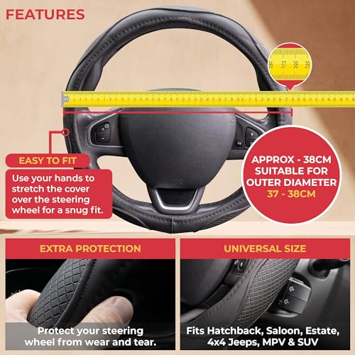 DIMENSIONE UNIVERSALE - Questa copristerzo auto si adatta ai volanti più comuni. Il diametro di questo prodotto è di 37-38 cm. Per berlina, berlina, station wagon, jeep 4x4, monovolume e SUV.