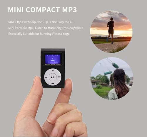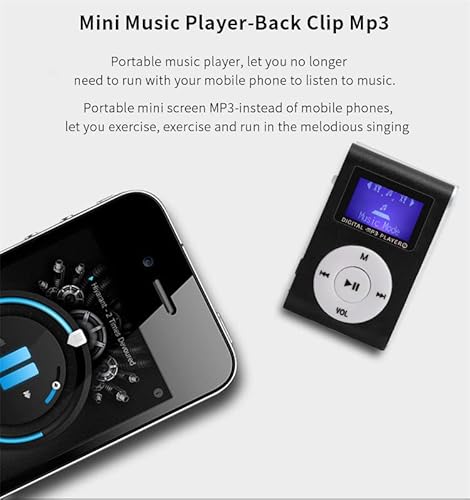 Gaeirt Mini Lettore MP3, Lettore Musicale Portatile, con Schermo LCD, Supporto per Scheda di Memoria, Supporto Massimo 32 GB, Adatto per Camminare e Correre (Argento e Nero)(Nero)