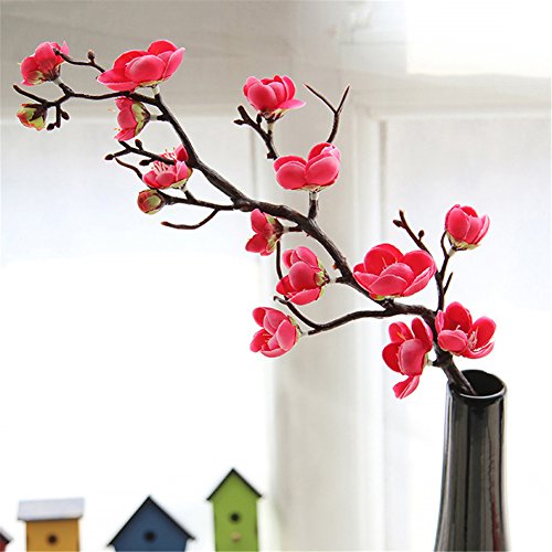 Gaeruite 1PCS artificiale Plum BLOSSOM60 cm lungo Lifelike Plum Blossom Flower bouquet Branch seta Tall falso composizioni floreali per matrimonio casa decorazione, Red, as show