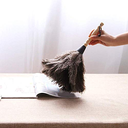 GAESHOW Manico in Legno Riutilizzabile Antistatico Piuma di Struzzo Spolverino Strumento di Pulizia per la rimozione della Polvere Spolverino Riutilizzabile