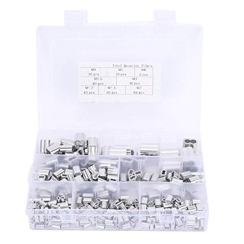 GAESHOW 315 pezzi Manicotti a crimpare in alluminio, Manicotto ad anello a crimpare in alluminio M1.2 M1.5 M2 M2.5 M3 M5 M6 Parti hardware Manicotto ad anello in alluminio