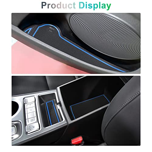 GAFAT 2019-2022 2023 Hyunda-i Kona EV Electric Tappetini Antiscivolo in Gomma per Console Centrale, Portabicchieri, Cuciture per Porta, Kona EV Accessori (Solo per EV) [Non per 2024+] (Blu)