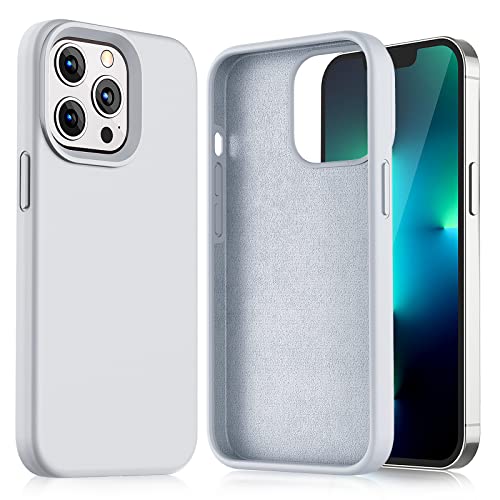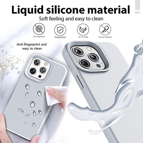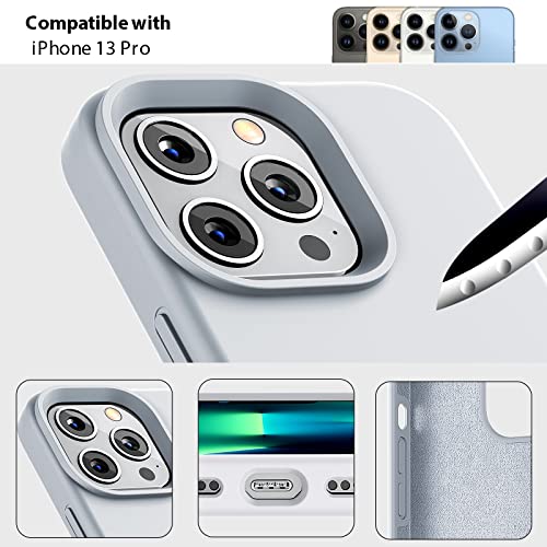 Gahwa Cover in Silicone Liquido Compatibile con iPhone 13 Pro Custodia 6,1”, Case Protezione in Gomma Gel per Tutto il Corpo Protettiva Antiurto Rinforzato con Fodera in Microfibra - Grigio Blu