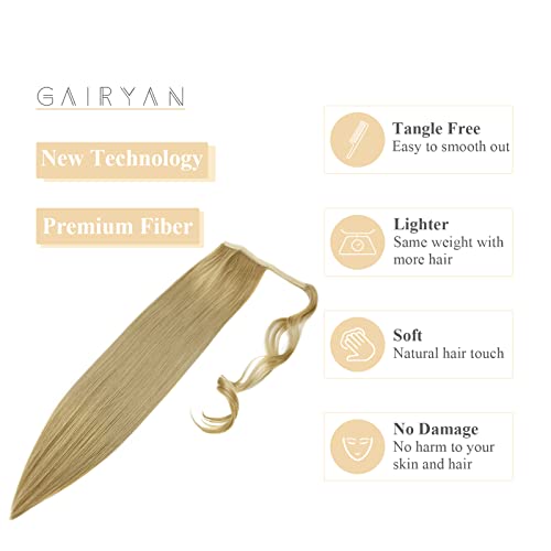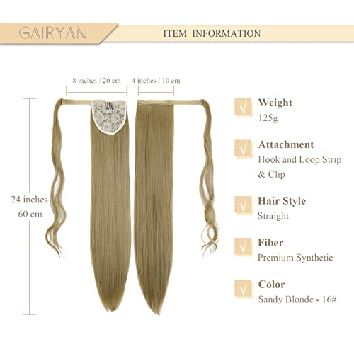 Gairyan Coda Capelli Extension Coda Finta Capelli Lisci Coda di Cavallo Extension Clip Wrap Ponytail Estensione Posticci per Capelli Sintetici Parrucchino Lungo 60cm per Donna- Sabbia Biondo