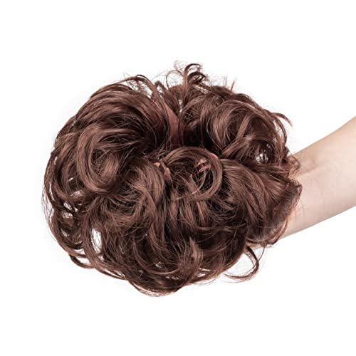 Gairyan Chignon Facile per Capelli Finti Posticci per Capelli Mossi Coda di Cavallo Ricci Extension Elastico per Chignon Disordinati Scrunchies Parrucchino Hair Bun Updo Paffuto 40g - Auburn scuro