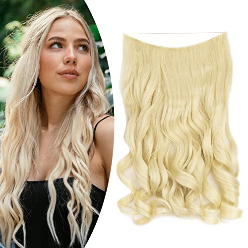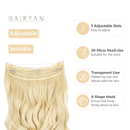 Gairyan Extension Capelli Filo Invisibile Secret Hair Extension Clip Capelli Finti Fascia Unica Wire Trasparente Capelli Sintetici Naturali Lunghi Ondulati Ricci Mossi 45cm per Donna - Bleach Blonde