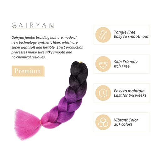 Gairyan Extension per Treccine Africane Extension Capelli Finti per Treccine Afro 24" Ombre Treccia Capelli Sintetici Crochet Twist Jumbo Braids confezione da 1 (Nero-Viola-Rosa Scuro)