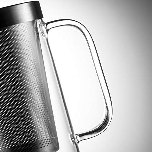 Teiera: Il grande colino da tè riempie quasi tutto il bicchiere per il tè. Grazie alle sue dimensioni è adatto per le foglie di tè, che hanno bisogno di spazio per dispiegarsi. Il colino di acciaio inossidabile con piccole aperture filtra anche le foglie sottili ed è facile da pulire