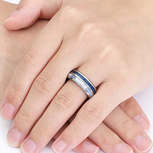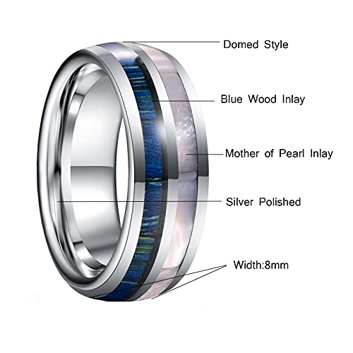 GALANI Anello di Nozze Argento Uomo Donna Tungsteno 8mm Anelli di Promessa di Fidanzamento di Matrimonio di Partner con Legno Blu e Madreperla Gioielli Taglia 25