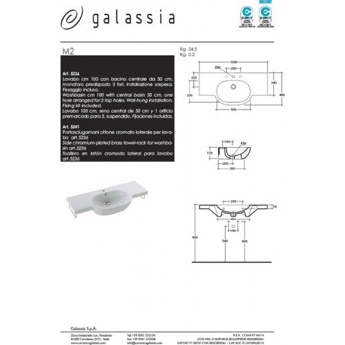 Galassia - Lavabo sospeso cm 100 Galassia serie M2