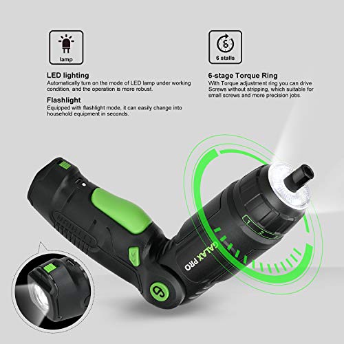 GALAX PRO Avvitatore Elettrico,3.6 V Cacciavite Elettrico,Regolazione a 3 posizioni,2.0 Ah batteria agli ioni di litio, luci a LED,cavo di ricarica USB,Viene fornito con 40 accessori