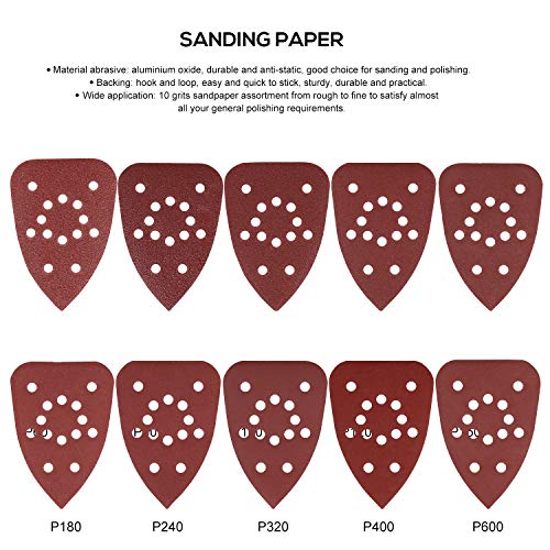 GALAX PRO Fogli Abrasivi 100Pezzi, Kit di Fogli Abrasive per Levigatrice Mouse 18Tipi 10x60/80/100/120/150/180/240/320/400/600 Graniglie (140x140x80mm) Ideale per Levigare, Lucidare