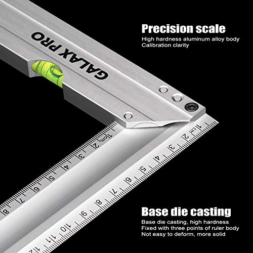 GALAX PRO Righelli in Acciaio Inossidabile 300mm, 90 Quadrati di Precisione con livella a bolla d'aria, Maniglia in lega di alluminio, per ingegneria, misurazione, disegno - S0405