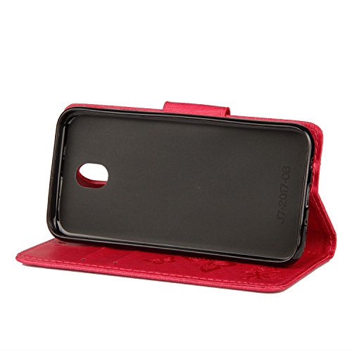 Galaxy J7 2017/J730 Coque,Farfalla Rosa Hand Strap PU Cuir Flip Housse Étui Magnetic Clasp Housse Cover Case Portefeuille Supporter avec Carte de Crédit Fentes pour Samsung Galaxy J7 2017/J730