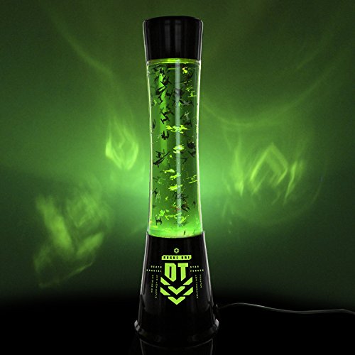 Lampada con glitter, rossa, con navi e personaggi di Guerre Stellari.