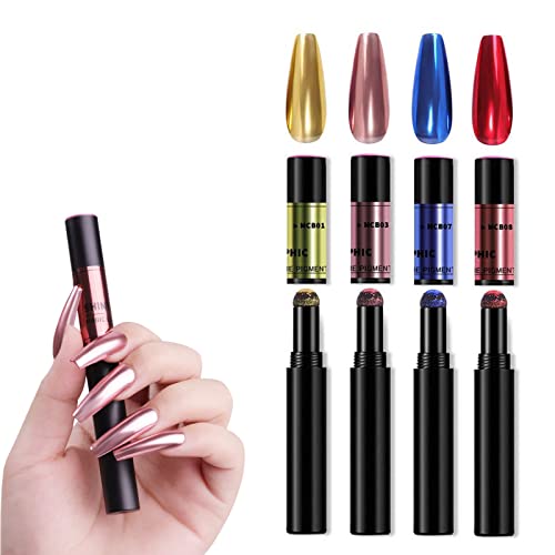 Galaxy Chrome Nail Powder Pen, Chrome Nail Powder Pen, Powder Air Cushion Nail Art Magic Pen, Magic Mirror Nail Powder Cushion Pen, Holographic Nail Powder Pen, Mirror effect (4PCS)