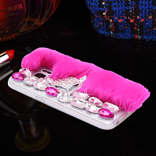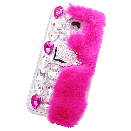 ZXK CO Galaxy S7 Cover, Custodia in Morbida Pelliccia per Samsung Galaxy S7 Disegno Volpe Calde Soffici Villi Eco Peluche Bling Caso Invernale Case Rosa Rossa