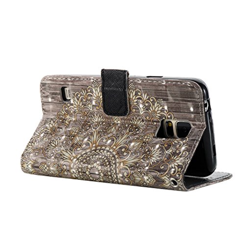 Galaxy S5 Flip Cover, Moon mood Portafoglio Libro Custodia in PU Pelle Wallet Folio Case per Galaxy S5 / S5 Neo Cover Bookstyle Copertura Mandala Custodia Samsung S5 Caso con Chiusura Carta Slot