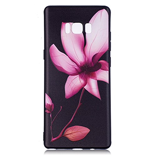 Galaxy Note 8 Custodia Cover,Silicone Custodia per Samsung Galaxy Note 8,Leeook Freddo Nero Bella Rosa Loto Fiore Modello Silicone Bumper Antiurto Protettivo Skin Custodia Coperture Ultra Sottile Flessibile Morbido Protettiva Bumper Shell Case per Samsung Galaxy Note 8 + 1 x Nero Stilo-Pink Lotus Flower