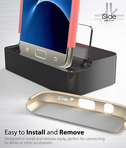 Vena Galaxy S7 Custodia, [iSlide][Two-Tone] Dock-Amichevole Slim Custodia Rigida Case Cover Copertura per Samsung Galaxy S7 (Rosso/Oro)